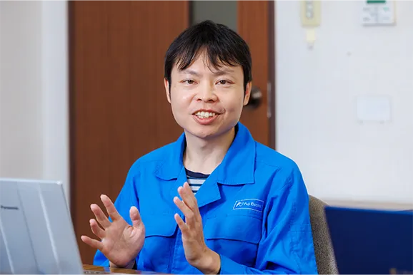 港湾クレーン向けの水素燃料電池システムを開発する佐久間は「東京、名古屋、神戸などで、水素を有効活用しようとする機運が高まっています。そこに富士電機の水素燃料電池を役立てたい」と語る。佐久間は別の部署にいたが、「新しいものに挑戦してみたい」と水素燃料電池の開発メンバーに自ら手を挙げた。