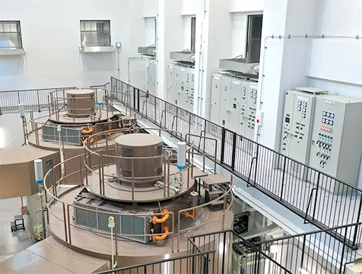 建設から60年以上が経過した本発電所では、清水建設㈱(以下、お客様)を含む共同企業体による大規模改修工事が行われ、2025年4月に運転を再開した。改修により最大出力は2,000kW増の25,600kWとなり、年間発電量は一般家庭約3万世帯分に相当する。当社は、この改修において水車・発電機(1・2号機)、制御装置などの発電設備一式を納入。据付工事は、富士電機E&Cがお客様から直接受注し、富士電機グループの連携による高品質なソリューションを提供している。