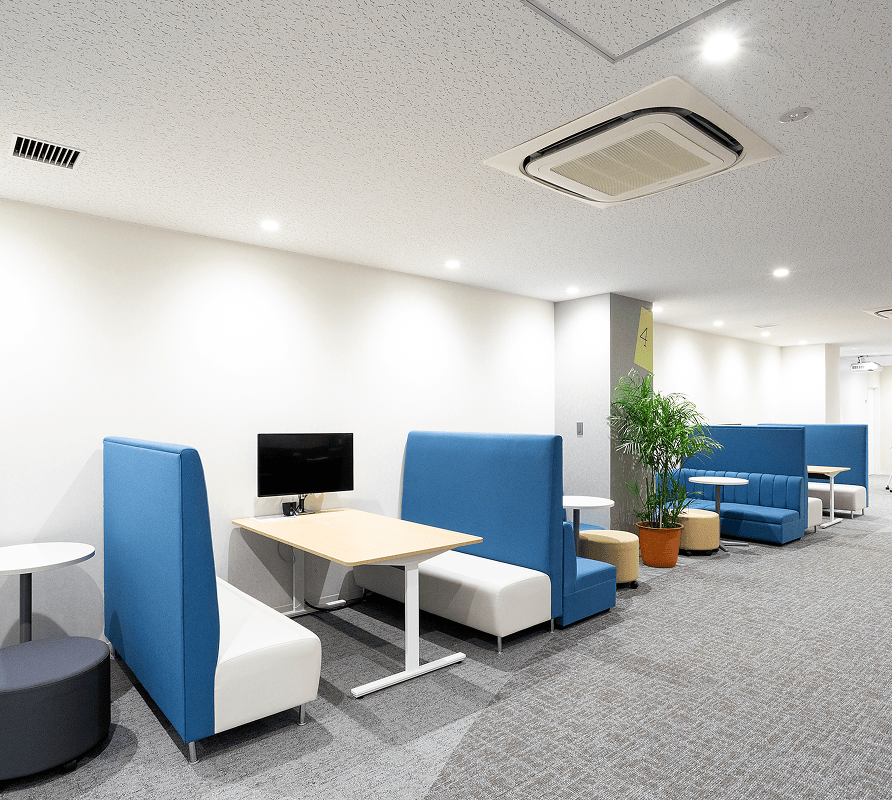 社内外の打合せから自己研鑽まで、自分のデスク以外で、用途に合わせて思考をリフレッシュできる場を用意しています。仲間とのコミュニケーションを通じて学びを深める。そんなワークスタイルを大切にしています。