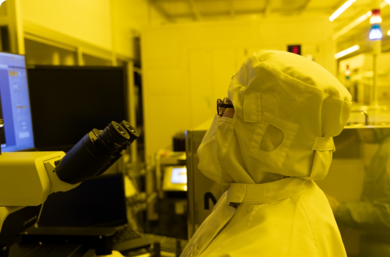- 製作課では、計画に基づいて半導体製品の製作から出荷までを担っています。私は現像検査、合わせ検査、寸法検査を担当し、顕微鏡で外観・寸法の測定をするのが主な業務です。交替勤務には2交替と3交替があり、私は早番・遅番・夜勤がある3交替の勤務体制ですが、残業が無いので勤務時間に合わせて無理なく働けています。