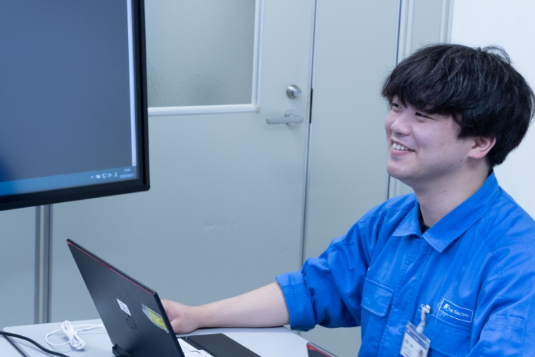 - 生産企画部システム課は、PCやITセキュリティの整備、生産システムの管理・運用が主な業務です。私はその中で、関係部署と連携し、製造現場に新しいシステムを導入するための通信試験とシステムのマスタ管理を担当しています。