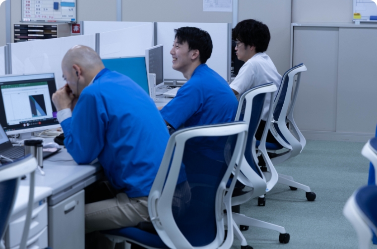 - 他部署と関わる機会が多く、様々な人と話すことが楽しいです。特に、1年目からお客様と直接やり取りできることに大きなやりがいを感じています。時には失敗して反省することもありますが、それも成長の機会と捉え、日々前向きに仕事に取り組んでいます。