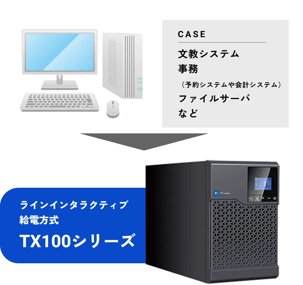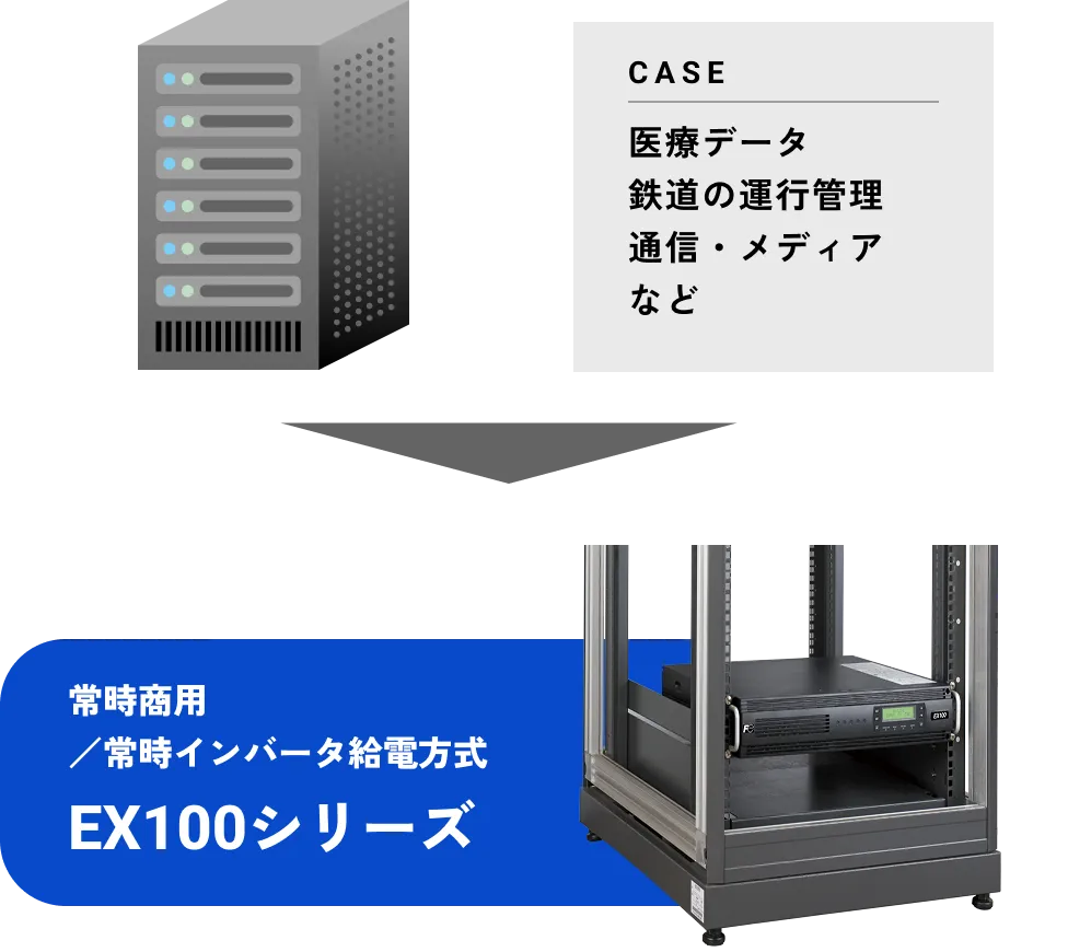 EX100シリーズは、電力トラブルから大切なデータ・情報を守るために、2通りの電力供給ができます。