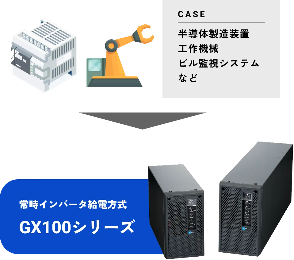 GX100シリーズはこのような電源トラブルを「一瞬たりとも」許さない、高品質な給電を行います。