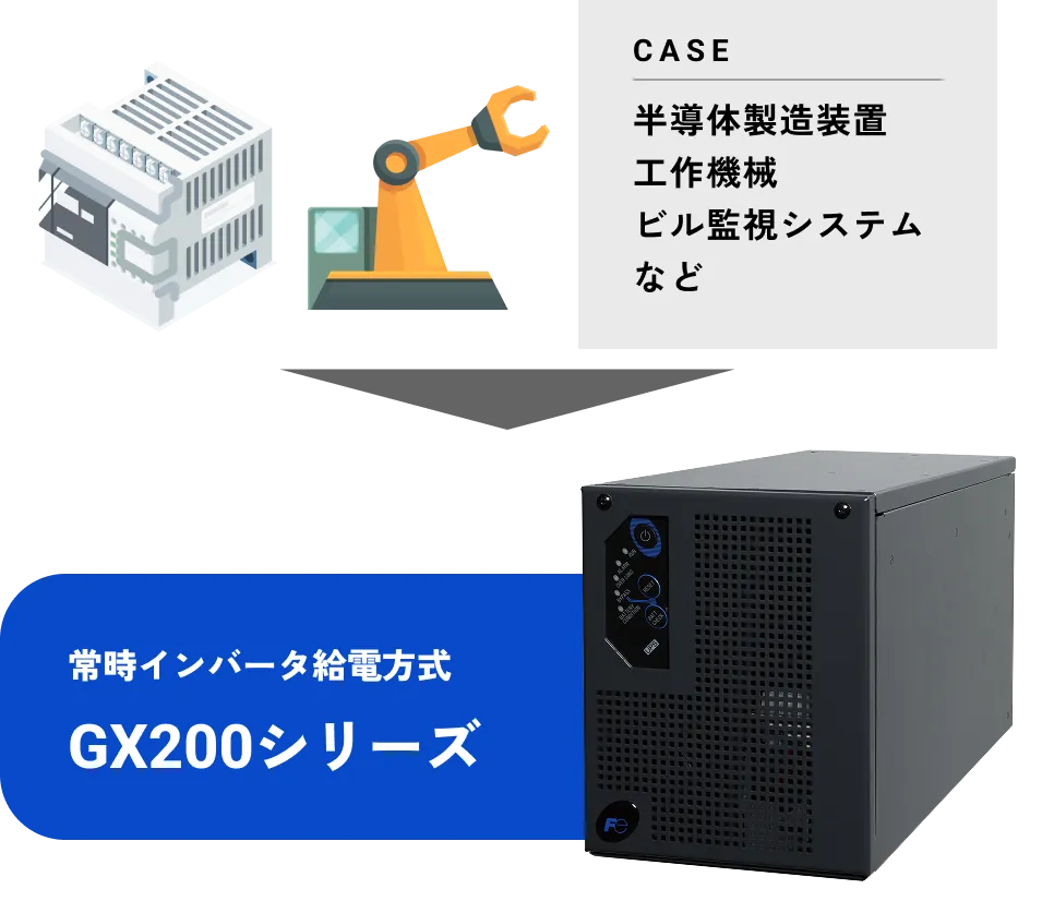 GX200シリーズはこのような電源トラブルを「一瞬たりとも」許さない、高品質な給電を行います。