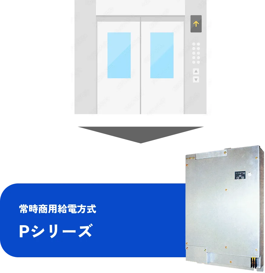 電源トラブルでエレベーターが緊急停止した場合、Pシリーズが、最寄りの階まで乗客を運ぶための電力を供給します。