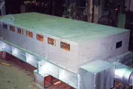 めっき薄鋼板のリフロー、塗装鋼板の焼付・乾燥、薄鋼板の焼鈍などの横型薄板加熱装置です。板厚0.1mmの極薄板の加熱も可能です。