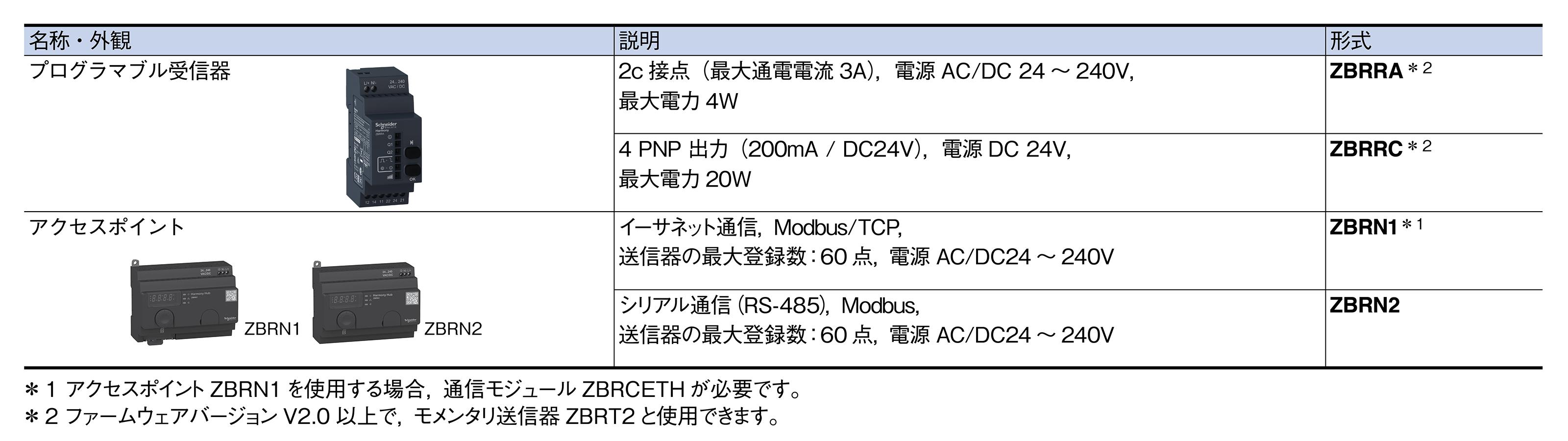 - ・イーサネット通信、Modbus/TCP・・・・・ZBRN1形 ※通信モジュールZBRCETHが必要。