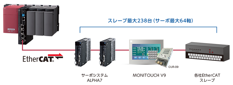EtherCATマスタとして、各種EtherCATスレーブに接続が可能です。