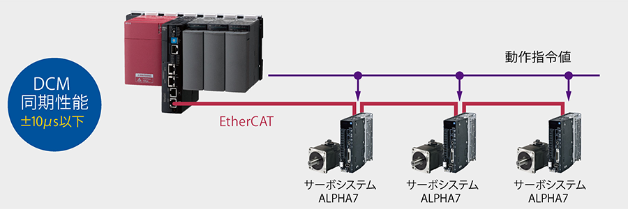 5000EC EtherCAT COMMUNICATION 高速かつリアルタイム性能を兼ね備えたEtherCATに対応し、 オープンなフィールドネットワークを構成可能。