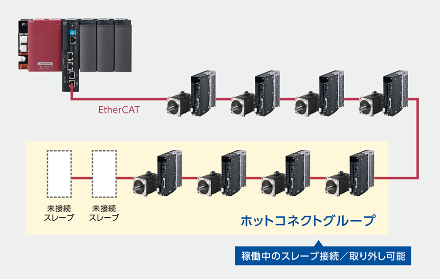 SPH5000EC(EtherCATマスタ)稼働中にスレーブの接続/取り外しが可能です。