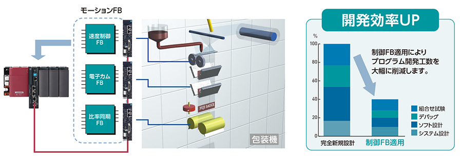 機能ブロック化したFBの再利用により、プログラム開発効率・デバッグ効率・信頼性を飛躍的に向上させます。