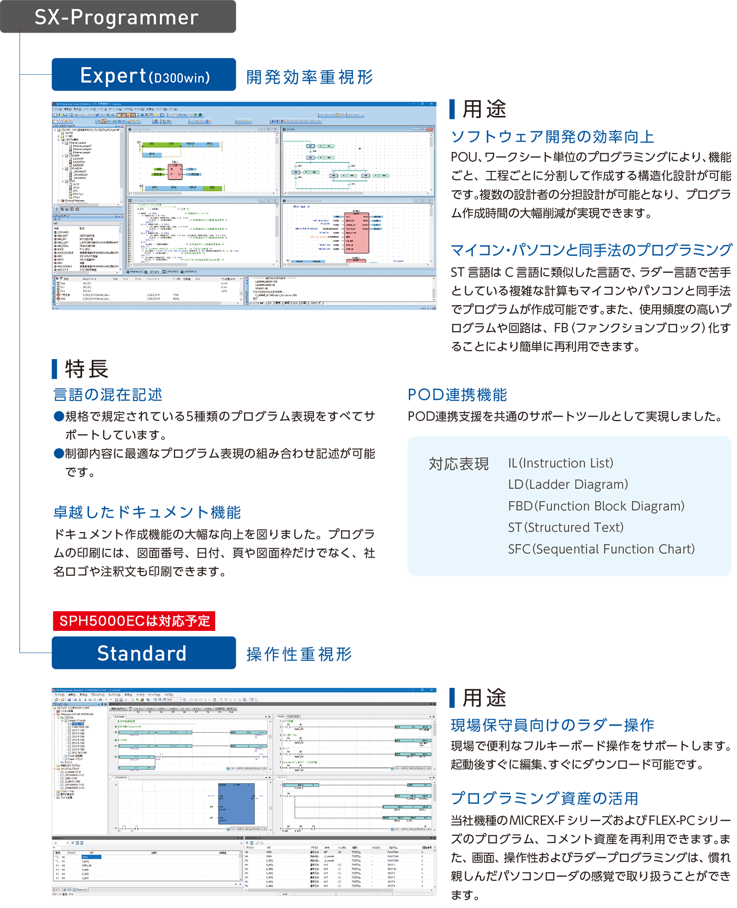 5000EC・5000M プログラミング支援ツール 開発スタイルに応じた2種類のプログラミング支援ツール SX-Programmer