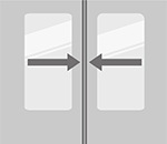 従来の電気式ドアシステムでは、ひとつの解錠ハンドルで2開⼝が限界だった緊急時の扉解錠。富⼠電機の電気式ドアシステムなら、通電/無通電状態を問わず、⽚側全ての扉(最⼤4開⼝)の解錠が可能です。