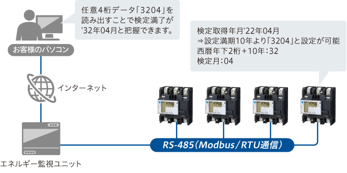 検定満了時期・テナント番号など任意データの設定、読み出しが可能。