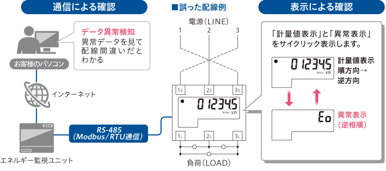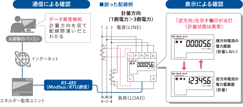 計量状態確認機能で、工事による誤配線を検出