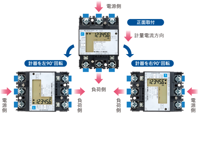 3方向表示切り替えで、設置環境に応じたフレキシブルな取付が可能