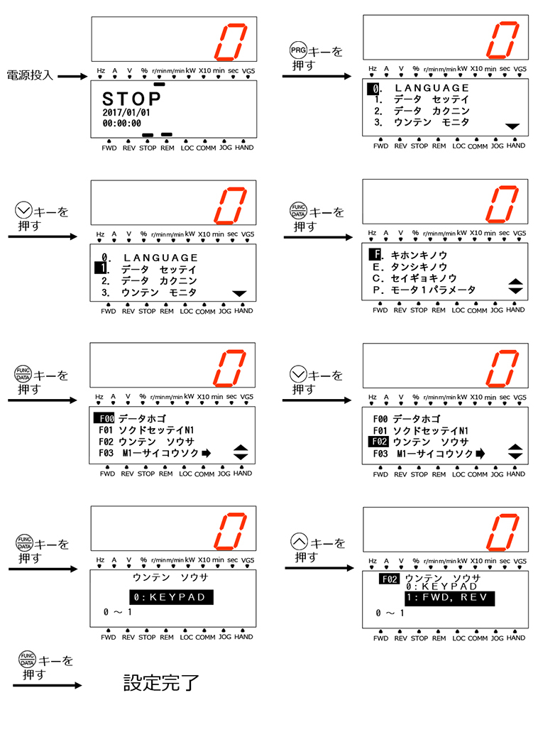 ホーム 製品情報 低圧インバータ FRENIC-VG FAQ -FRENIC-VG 電源投入と同時に運転するにはどのように設定するのですか? Menu 低圧インバータ FRENIC-VG FRENIC-MEGA(G2) FRENIC-MEGA(G2P) FRENIC-Ace(E3) FRENIC-Ace(E2) FRENIC-Mini(C2) FRENIC-HVAC FRENIC-Lift (LM3) 周辺機器 富士コンパクト形電源回生コンバータFRENIC-eRHRシリーズ 富士コンパクト形 電源回生PWMコンバータFRENIC-eRHCシリーズ 高力率・電源回生PWMコンバータRHCシリーズ サージ抑制ユニット オプション オプションガイド 生産終了品 プロモーション動画 ダウンロード ダウンロード コンポ通信 外形図・CAD サービス&サポート eラーニング FAQ 富士電機 FA Webサイト PRODUCT SELECTOR 低圧インバータの設定・メンテナンスがグッと楽になる! 電源投入と同時に運転するにはどのように設定するのですか? 主な機能・特長 共通仕様 形式一覧 FAQ カタログ ダウンロード 設定方法 アンケートにご協力ください 問題は解決しましたか? 問題は解決した 一部解決した 解決できなかったが、参考になった 参考にならなかった 記事内容について わかりやすい ふつう 内容が難しい 知りたい情報ではなかった ご意見等があればご記入ください ※ 返信が必要な場合(ご質問・お問い合わせ等)は、 お問い合わせフォーム をご利用ください。 送信する 送信しました。ご協力ありがとうございました。 その他の質問 FRENIC-VG- FAQトップページへ戻る お問い合わせ カタログ請求・製品購入 価格、納期についてのお問い合わせやカタログ請求は当社営業または代理店にお問い合わせください。 国内販売ネットワーク 技術相談窓口 導入前の製品の技術的なご質問も、電話、メールでお受けしております。 お問い合わせフォーム TEL: 0120-128-220 受付時間(春季・夏季・年末年始の弊社休業日を除く) 平日(月〜金曜日) AM9:00~PM7:00 土・日・祝日 AM9:00~PM5:00 アフターサービス 製品に不都合が生じた場合は、お近くの拠点にお問い合わせください。 国内ネットワーク 海外ネットワーク 関連製品 高圧インバータ モータ/応用製品 プログラマブルコントローラ プログラマブル表示器 計測機器 受配電・制御機器 サーボシステム