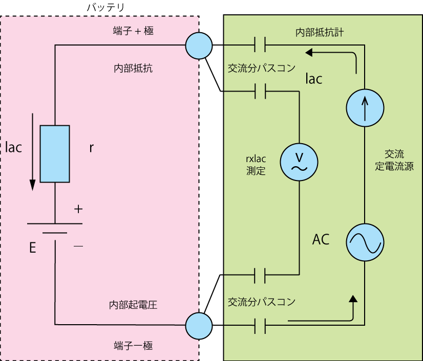 バッテリの内部抵抗を測定して規格以内であることを確認する方法。(内部抵抗計方式)