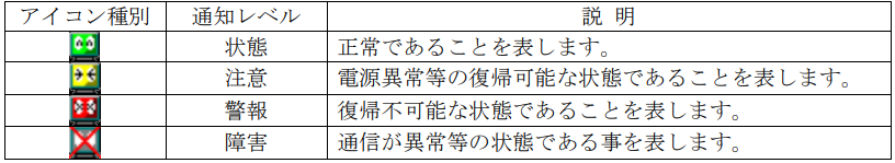 ・タスクトレイに表示されるアイコン種別で、通知レベルを表示します。