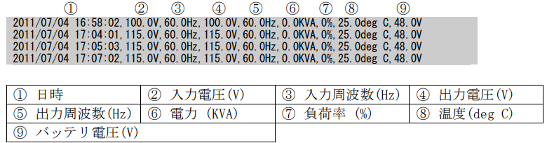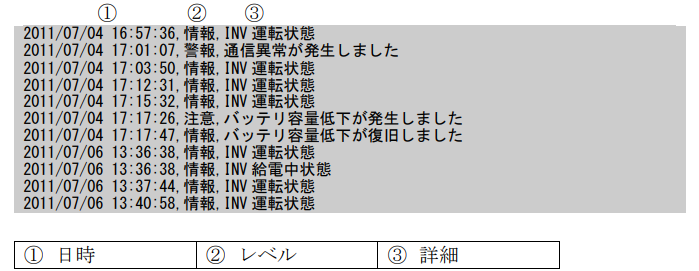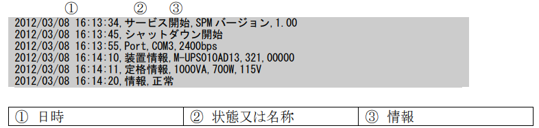 ・電源障害などのイベント発生/復旧時に、日時を付加してイベントデータをログファイルに記録します。