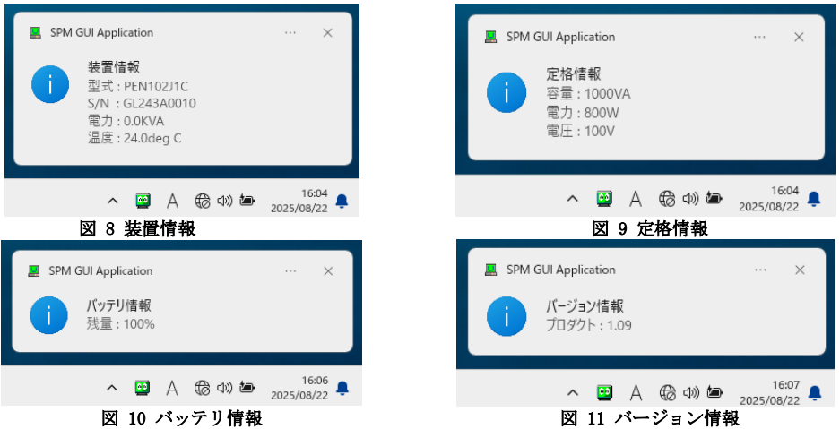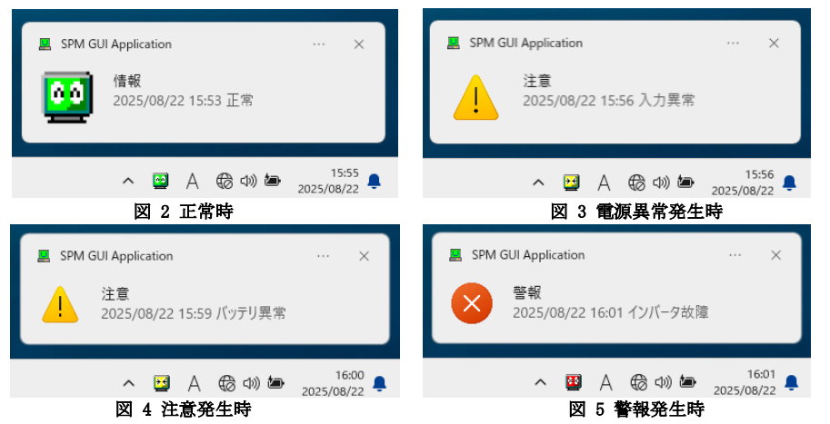 電源障害などイベント変化検出時に、タスクトレイに表示されるアイコン上にトースト通知表示で状態を表示します。