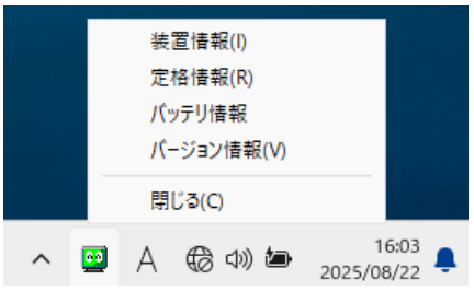 ・タスクトレイに表示されるアイコン上で、右ボタンをクリックするとメニューが表示されます。
