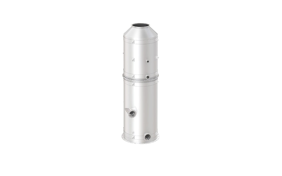 国際海事機関(IMO)が制定した船舶用Sox排出規制に対応する排ガス浄化装置として、2018年に生産を開始。船舶向けSoxスクラバとしては世界初の、サイクロン技術を採用した内部構造により製品の小型化と高性能化を両立し、環境負荷の低減にも貢献しています。