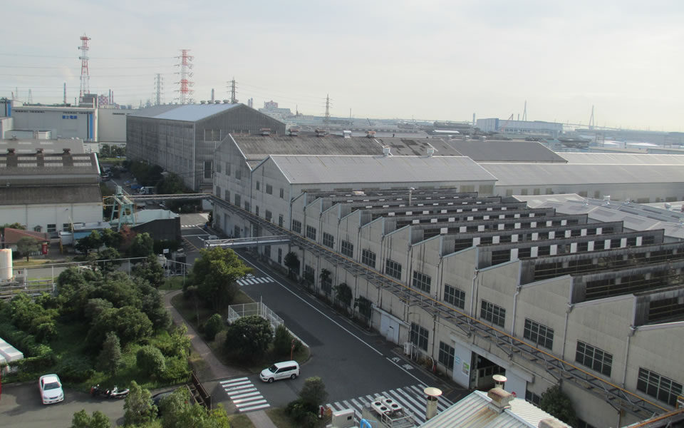 敷地面積は177.987㎡あり、東京ドームがすっぽり3つ入る広さを持ちます。JR鶴見線を挟んで2つの地区に分かれており、社員は線路を越えるために建設された陸橋を使用しますが、大きな製品は終電後に線路上を横断して移動させます。