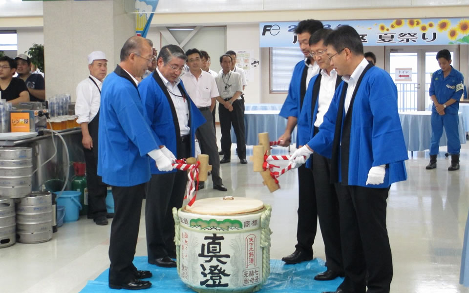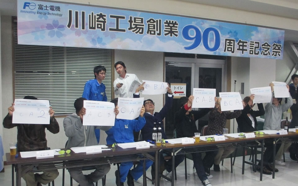 2015年度、川崎工場は操業90周年を迎えました。操業90周年記念祭では、地区の全従業員が集まって90周年を祝いました。90周年にちなんだイベントも大盛り上がりで、職場のコミュニケーションの場になったとともに、100周年に向けて一致団結する機会になりました。
