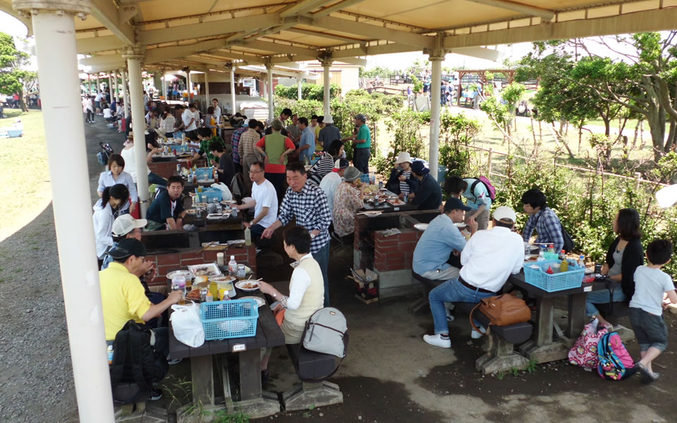 ソフトボール大会やスキーツアーなど休日に開催されるイベントはご家族と一緒に参加できます。三浦海岸にて行われたウォークラリーでは、ゴール地点にてバーベキューを楽しみました。