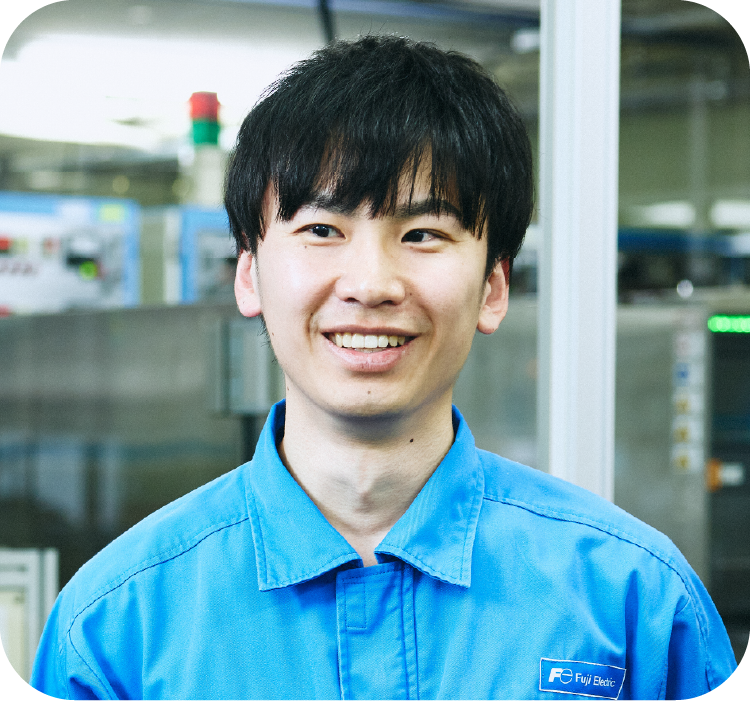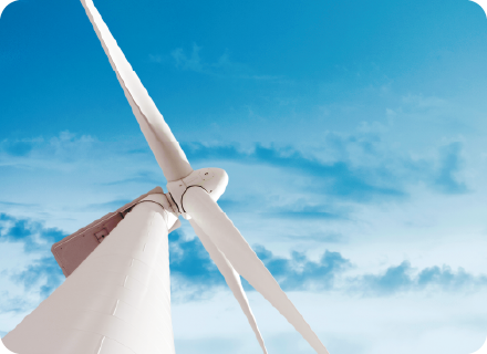 風力発電を支える巨大な風力発電用の風車にも富士電機製のパワー半導体が使われています。ブレードと呼ばれる羽を風力で回転させて発電機を回し、電気を生み出す風力発電は、その電気を送電線に流すためには、電圧と周波数を変える必要があります。そこで活躍するのがパワー半導体です。