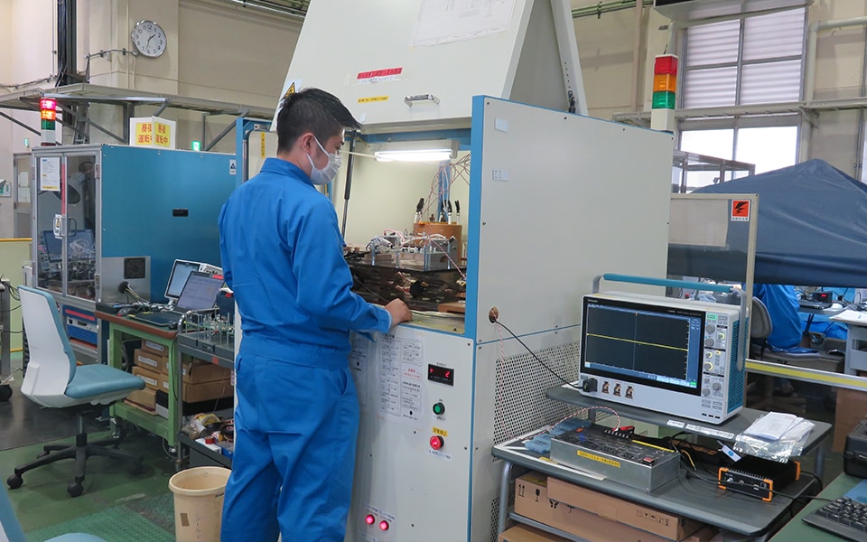 パワエレシステムの中核であるプラントの監視制御システム・盤の製造・試験を担っています。現地環境の再現性を高めたシステム組合せ試験を実施することで、工場出荷完成度を向上させています。