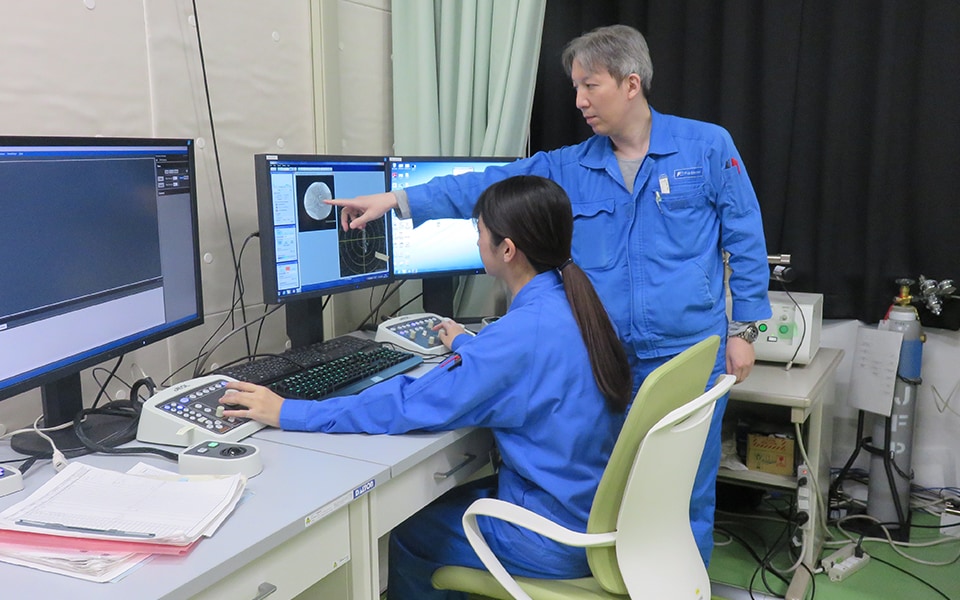 富士電機のコンポーネントを支える材料技術の開発拠点があります。最先端材料や低環境負荷材料の適用研究に取り組んでいます。最先端の機器を使った分析や、計算科学による理論検討にも取り組んでいます。