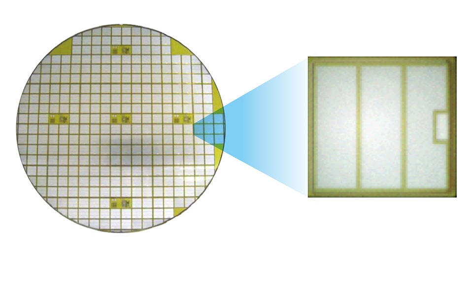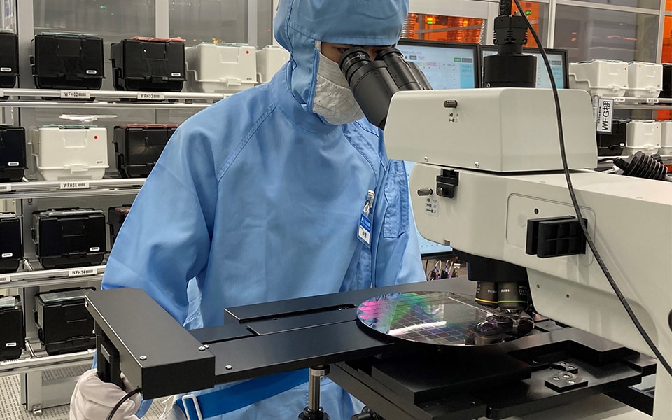 電力の制御や供給という役割を担うパワー半導体は、車載向けをはじめ各種の産業や電源分野など、安定した電気の供給が必要とされるさまざま場面で活躍しています。山梨工場はパワー半導体の要である「チップ」を8インチウェハで生産。供給量を拡大して、日々加速していく自動車の電動化に対応しています。