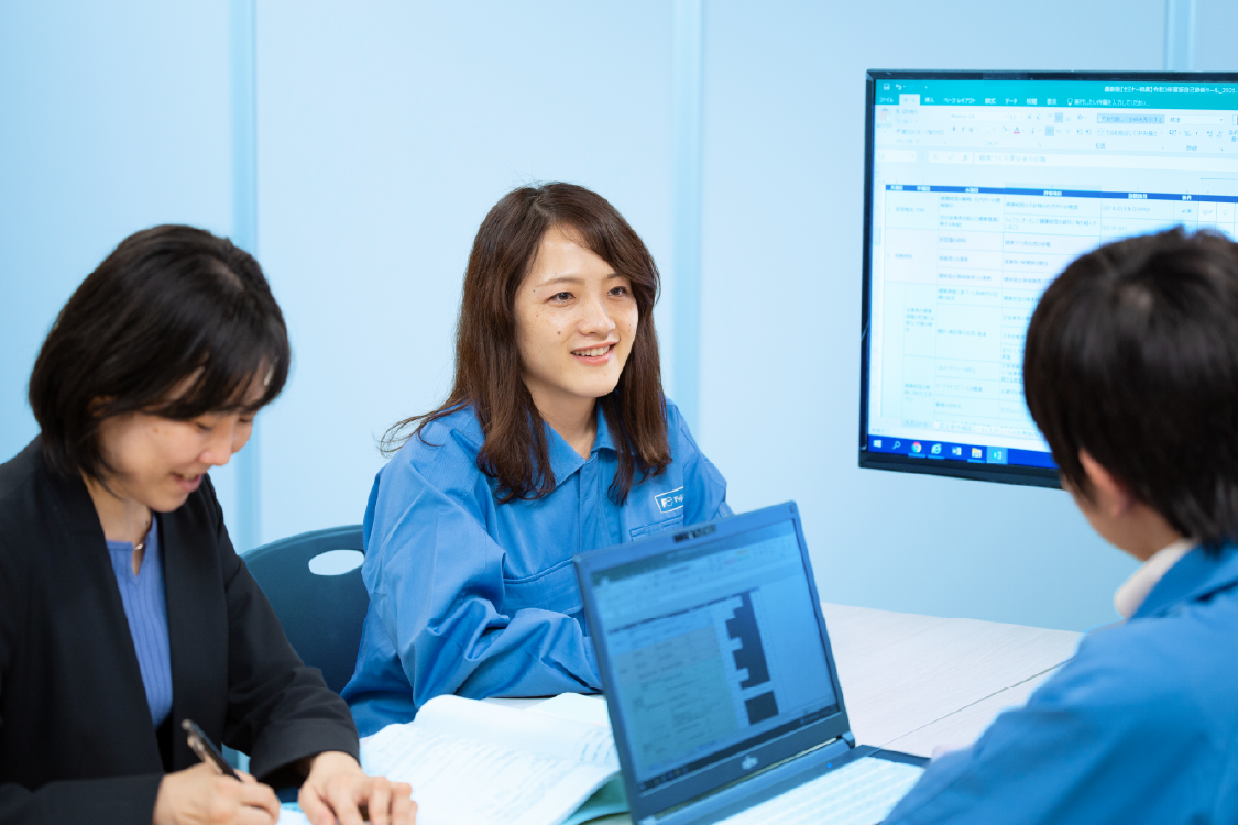また、チームリーダーとして後輩の育成にも注力しています。私自身、未経験で入社した当時は分からないことだらけで、先輩社員やリーダーのフォローにとても助けられた経験から、どんな小さなことでも話してもらえる雰囲気づくりを重視。対面だけでなくチャットツールも活用し、さらに自ら積極的に声がけを実施しています。多忙な部署ですが、後輩の成長とプロジェクトの完遂が大きなやりがいです。再生可能エネルギーに関わる事業はさらなる拡大が予測されるため、今後は業務の平準化に取り組みながら働きやすい環境を整え、メンバー全員を引っ張っていきたいと思います。