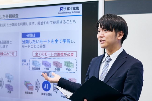 試行錯誤を重ねながら開発したAIプログラムが、自社製品の生産性向上やお客様の課題解決につながる瞬間は、この仕事の醍醐味です。日々の努力は大変ですが、将来的には「製品パッケージとして販売できるAIプログラム」を開発し、より多くの現場に役立つ技術を届けたいと思っています。