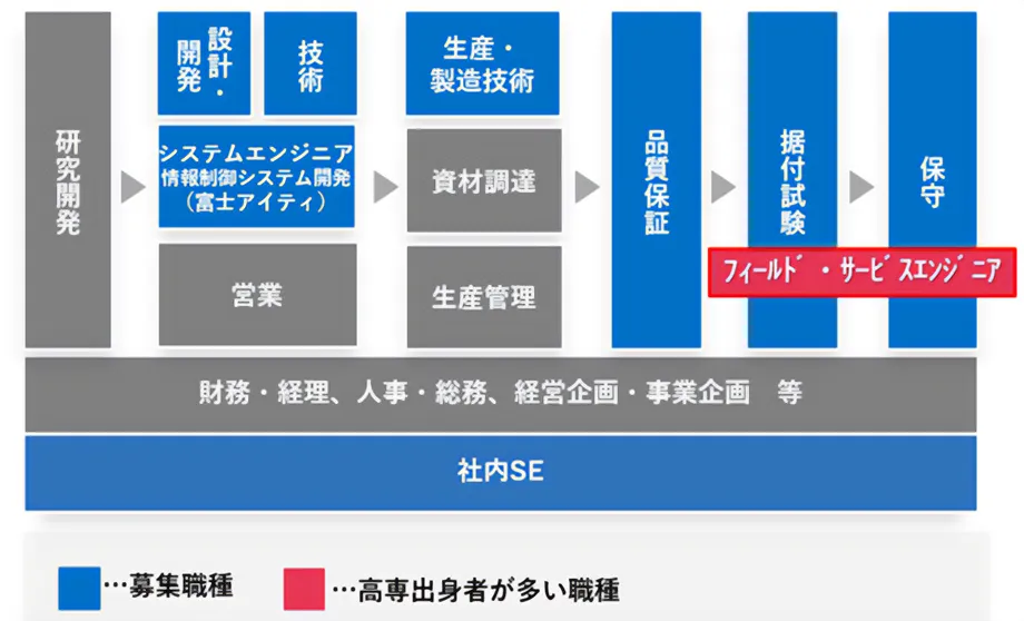 選考の段階で興味のある事業(エネルギー、インダストリー、半導体、食品流通・・・)を選択頂き、該当事業への配属を前提に選考が進みます。